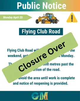 Flying Club Road will be closed until further notice to allow crews to complete repairs related to flooding.